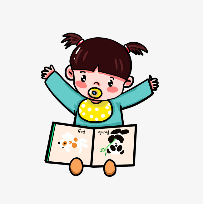 早教看绘本的卡通小娃娃PNG素材图片免费下载_高清psd_千库网(图片编号