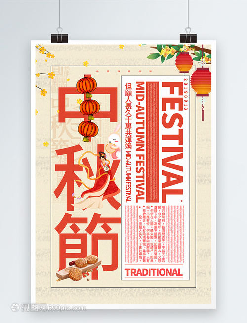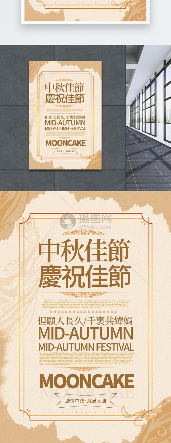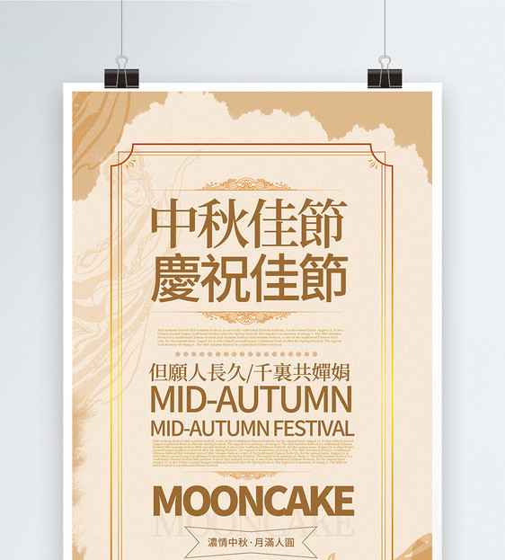 雅米色简洁中秋节中英文海报