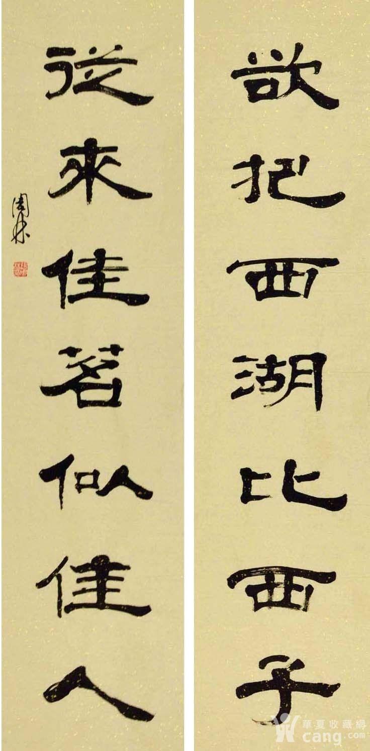 隶书对联-欲把西湖比西子.从来佳茗似佳人