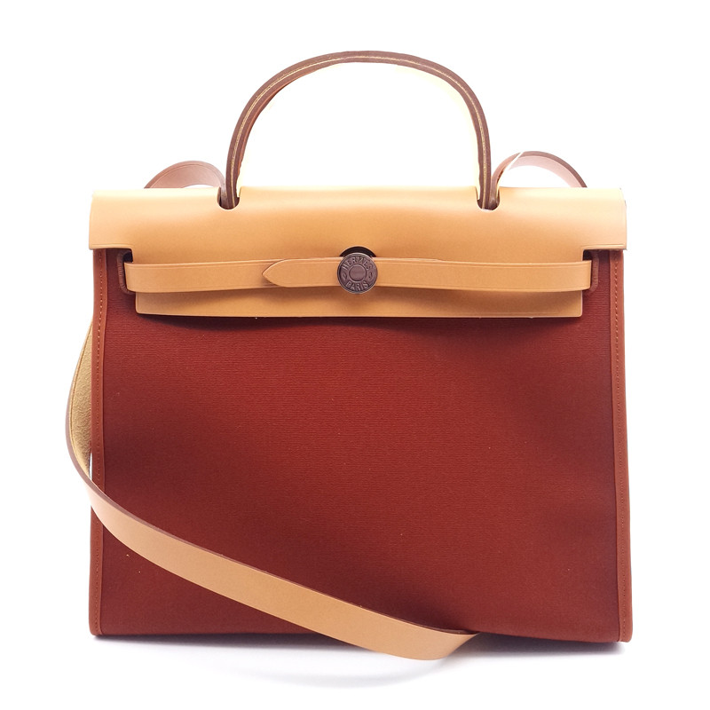 HERMES\/爱马仕 女士herbag 砖红色帆布\/