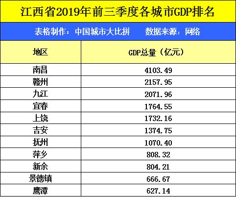 区市GDP排名出炉 南昌赣州九江位列三甲