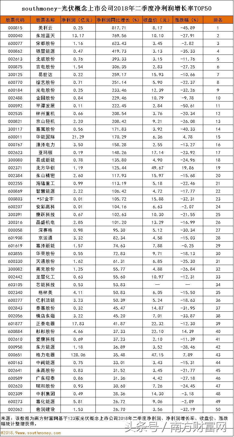 中国光伏企业排名|26家净利润增速达100%以上 最高达817.71%