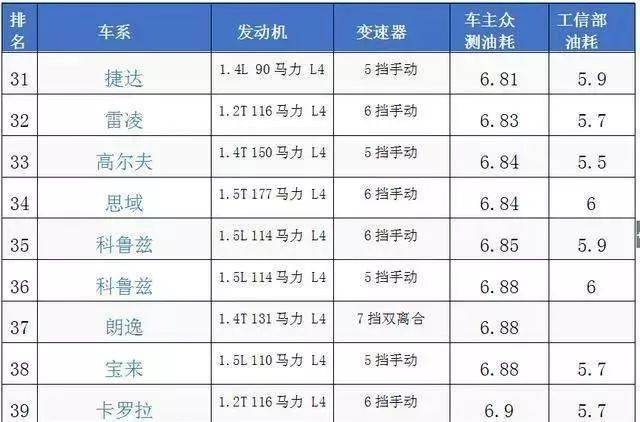 文章】55款家用轿车油耗排行榜:英朗第3,