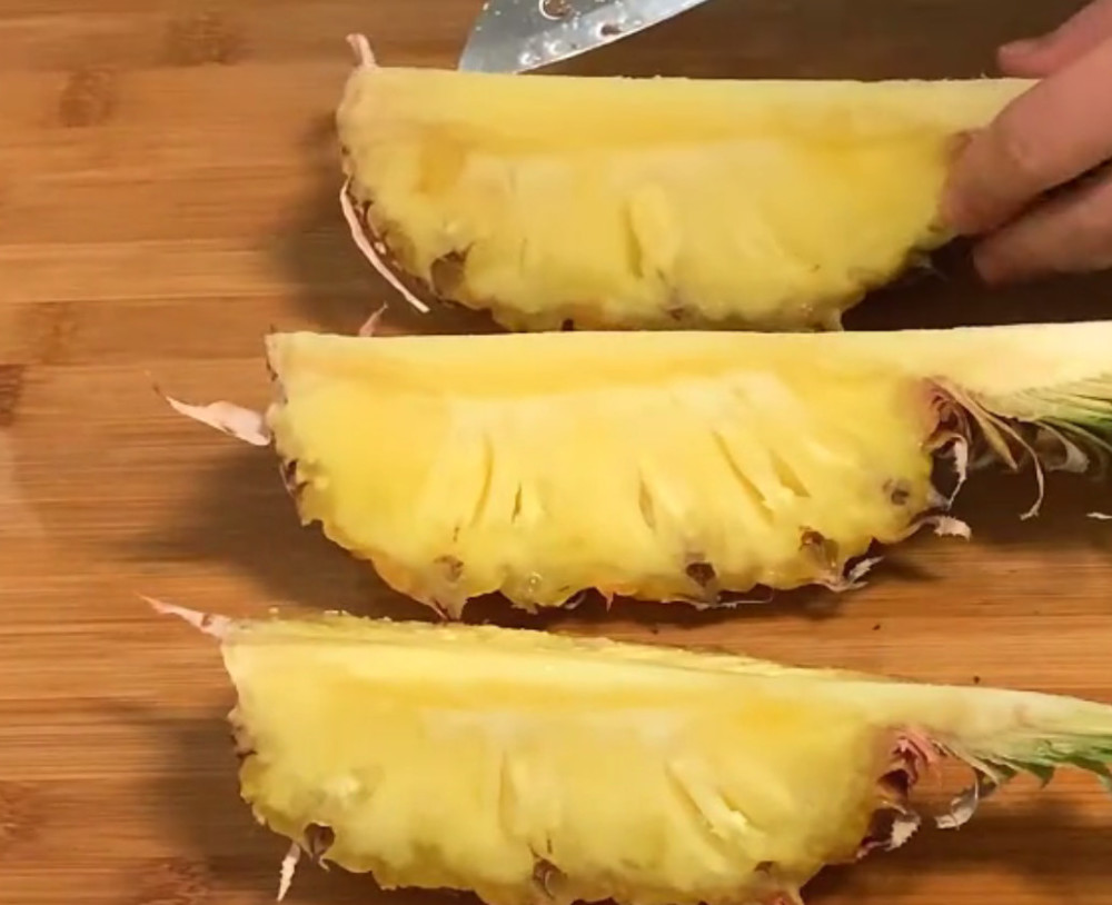 再解析一种菠萝切法,厨师教你去皮不带刺