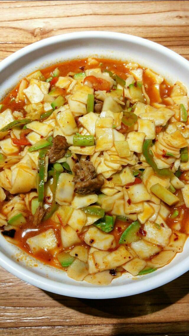 西安的特色炒面片不常有 加上胡萝卜包菜洋葱口感丰富