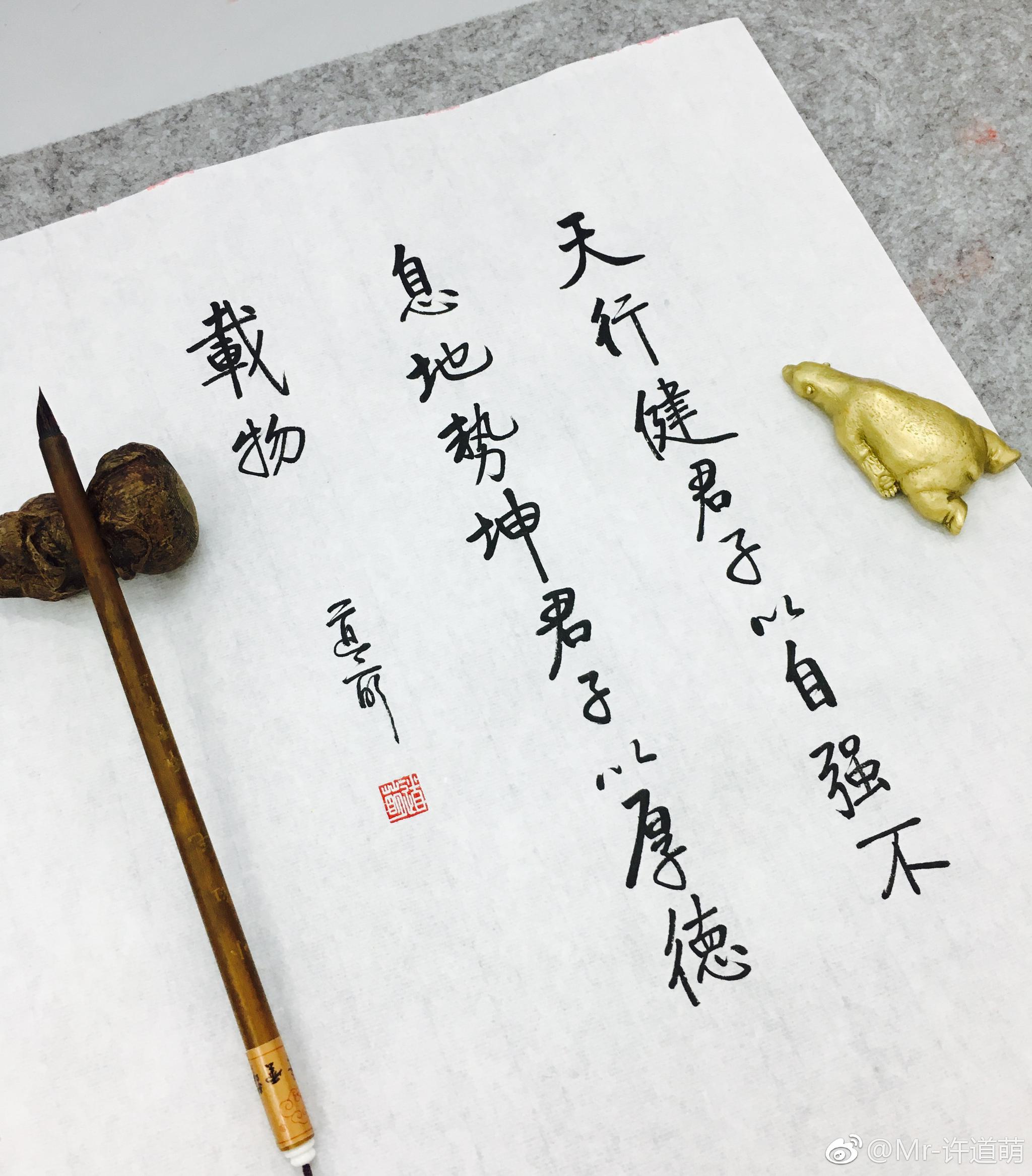 夏广田 四尺对开《天行健 君子以自强不息》 著