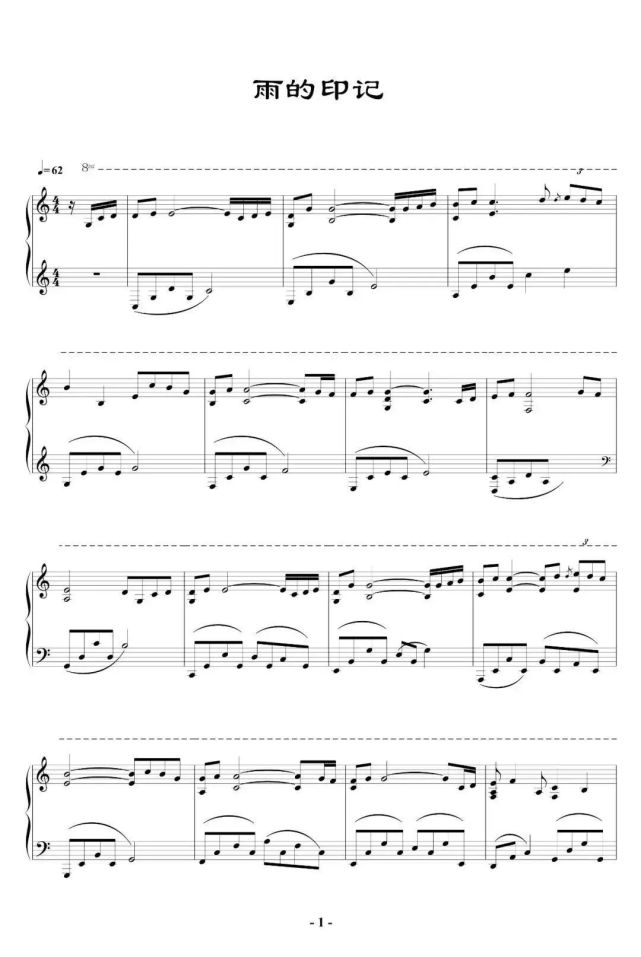 雨的印记 钢琴双手简谱 原版 钢琴谱 钢琴简谱