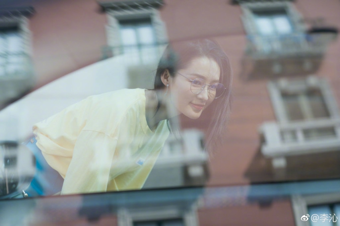 李沁戴框架眼镜变身文艺青年 穿黄上衣配