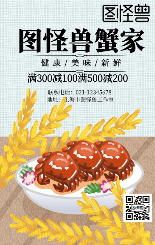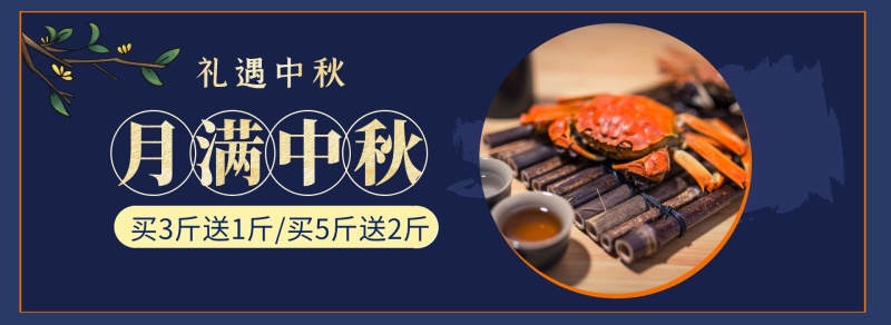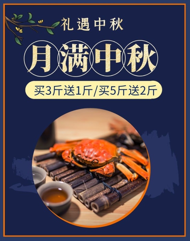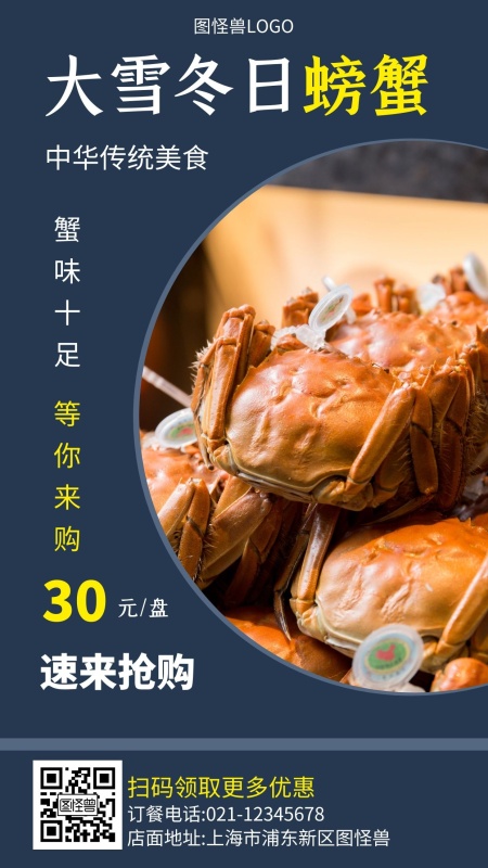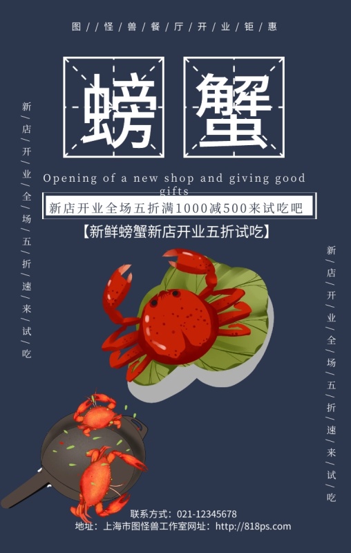 深蓝色螃蟹海鲜餐饮开业大吉宣传
