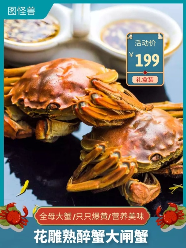 袜子螃蟹红色蓝色淘宝电商竖版海报