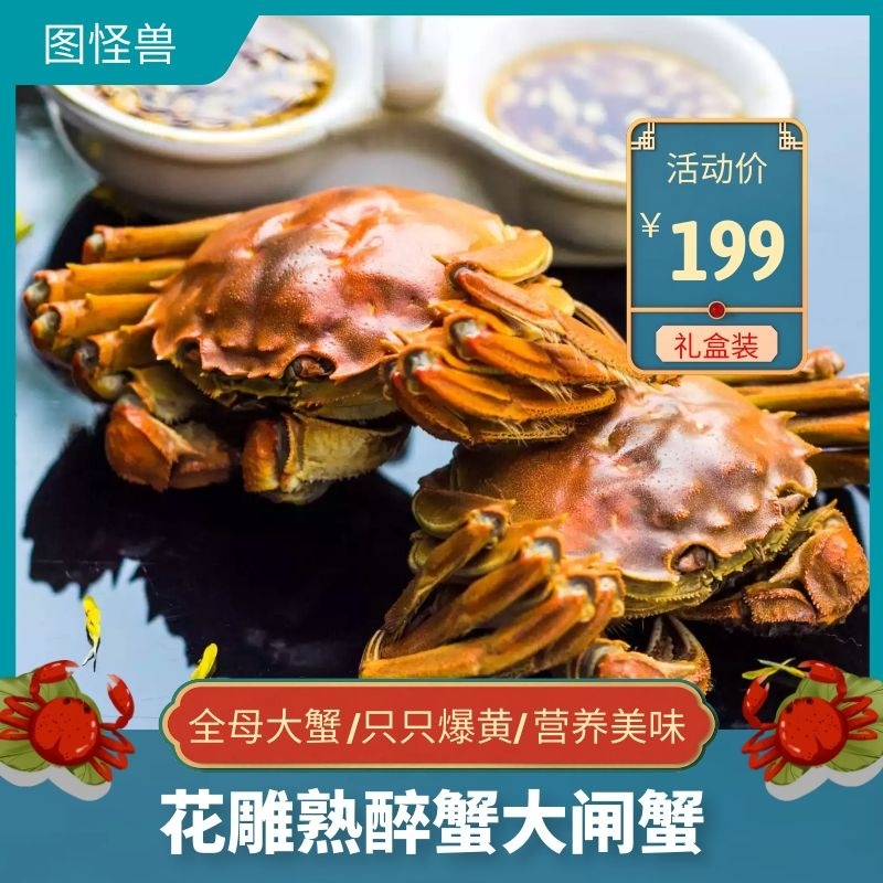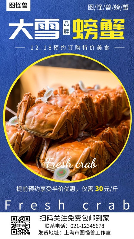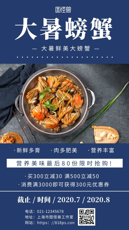 蓝色螃蟹大闸蟹美食美味食品宣传活动海报