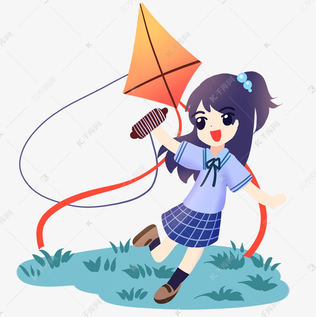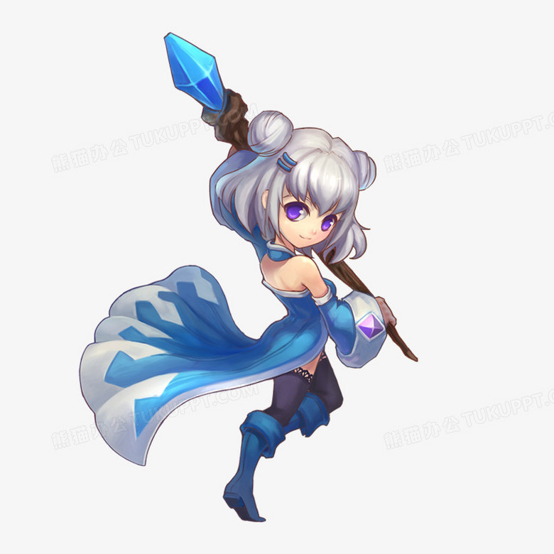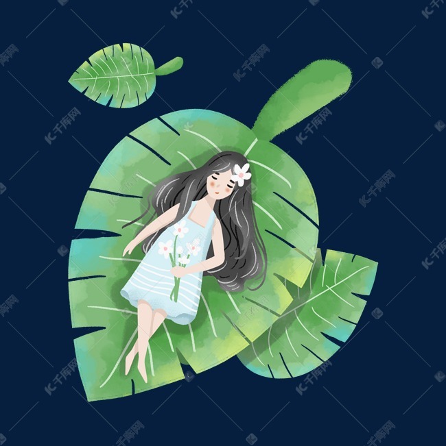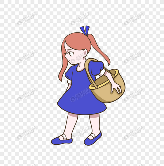 蓝衣女孩可爱素材手绘模板免费下载_psd