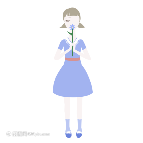手拿矢车菊的蓝衣女孩白色蕾丝边