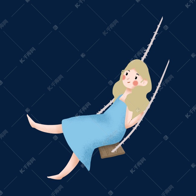 夏季荡秋千的蓝衣女孩素材图片免费下载_