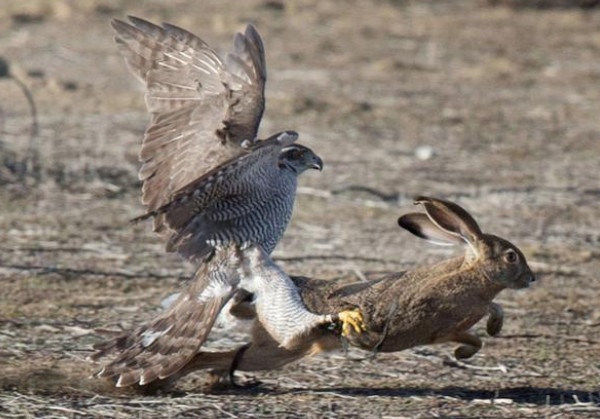 猛禽野化训练上演“兔子蹬鹰”(组图)