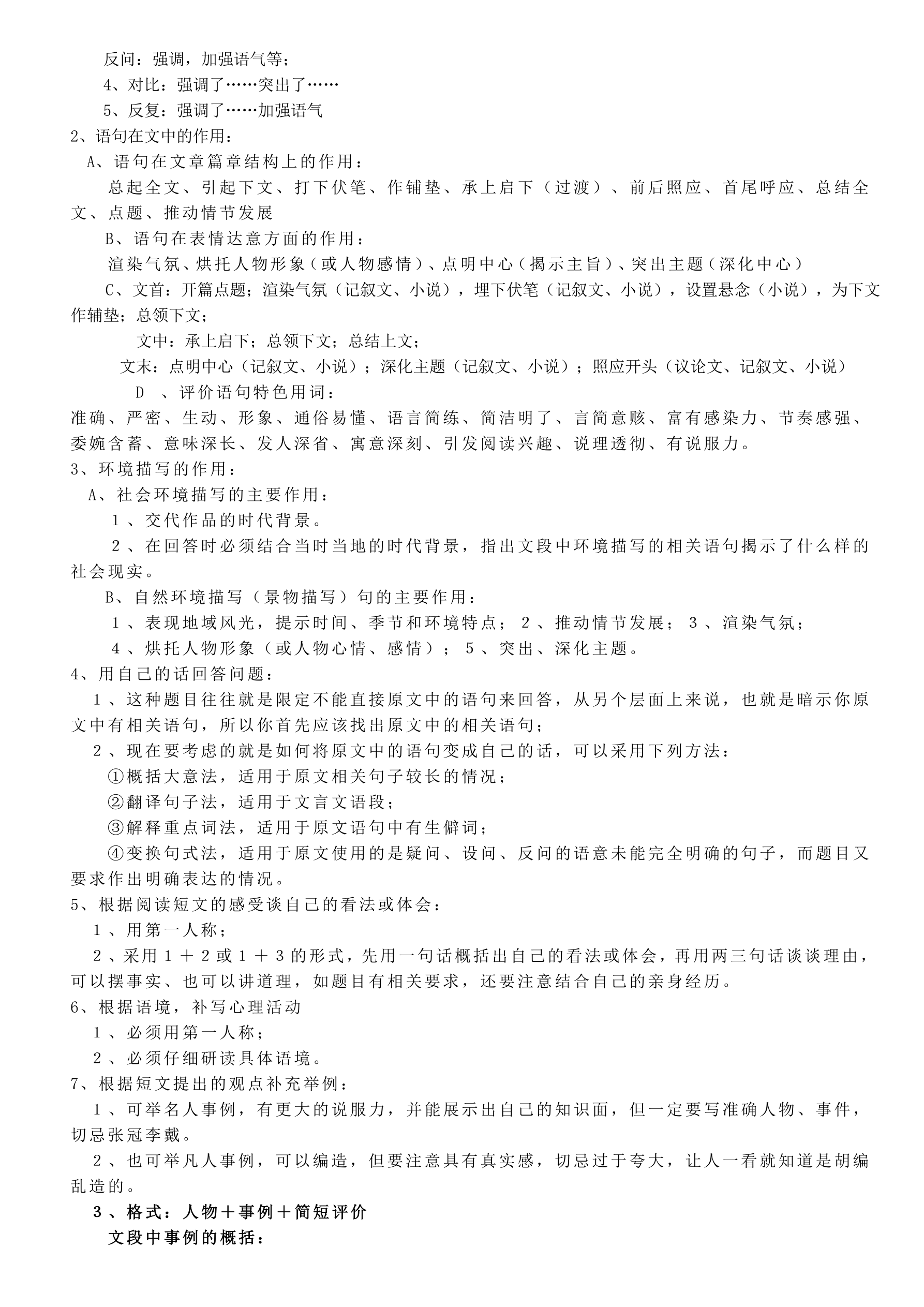 高考语文 现代文阅读答题技巧素材