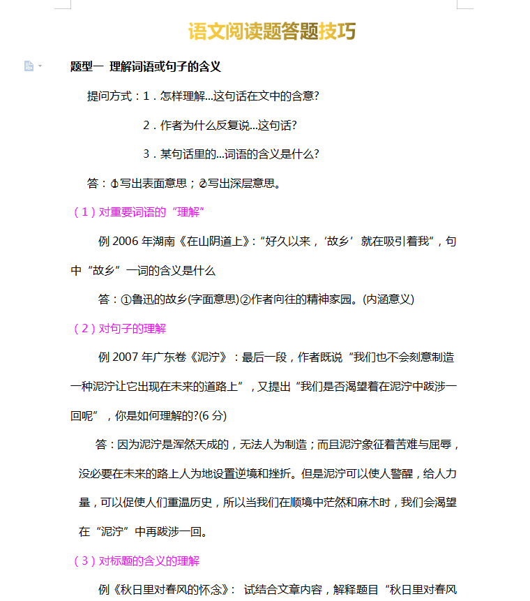 高考语文答题技巧,阅读理解答题方法。