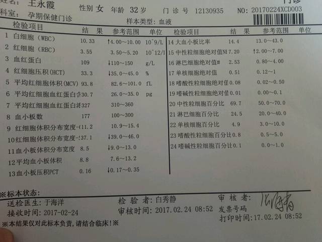 15天婴儿血常规检查结果,帮忙看看,怎么了。急急。