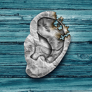 耳癌医疗疾病的皱巴巴的纸,形状为人类听觉感