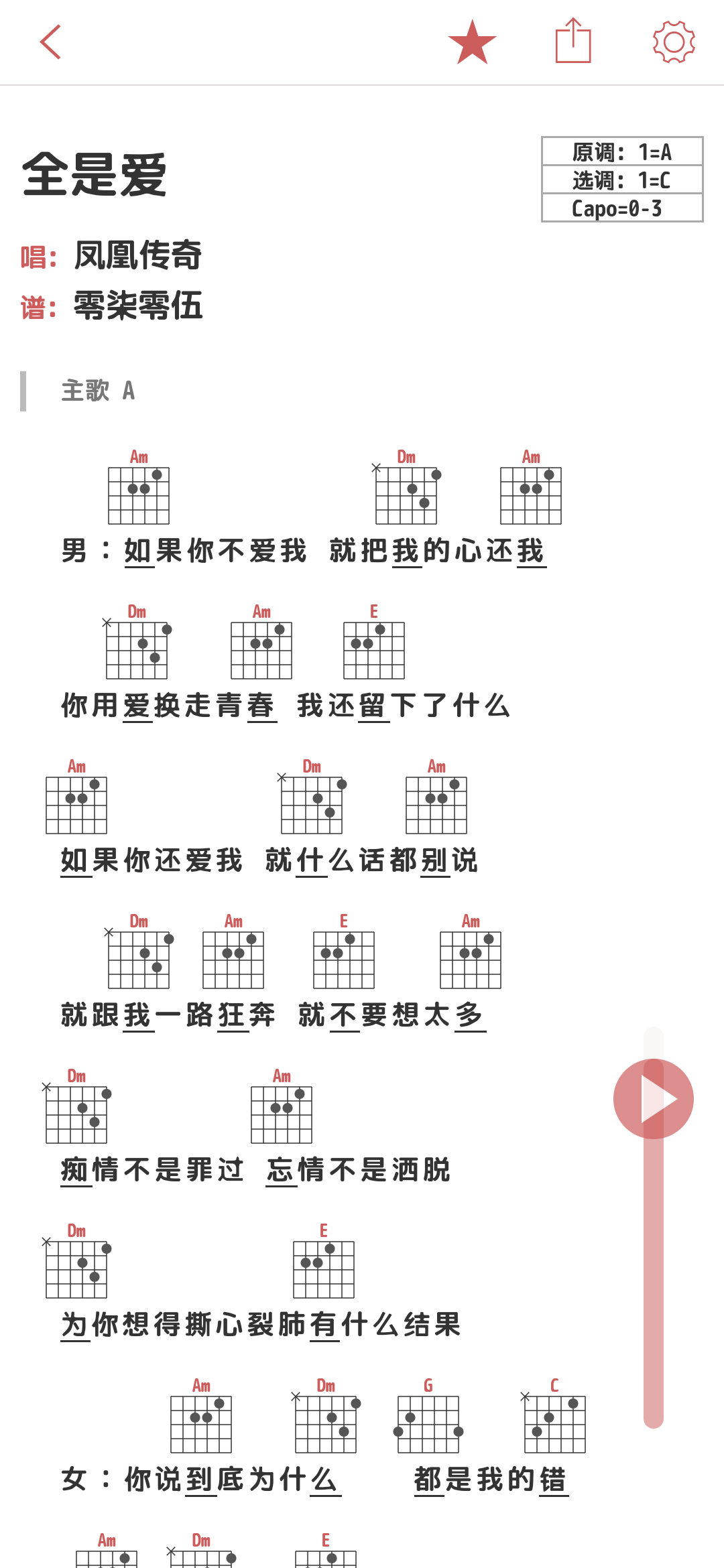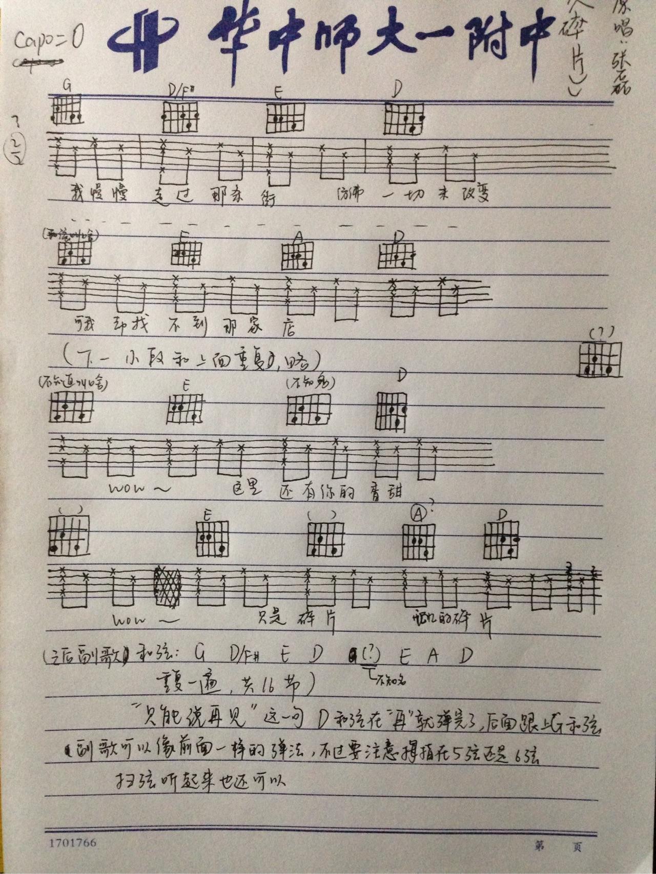 张磊《碎片》自扒吉他谱
