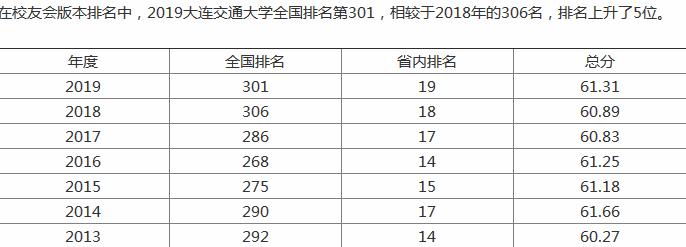 大连交通大学排名2020年提升67名 综合
