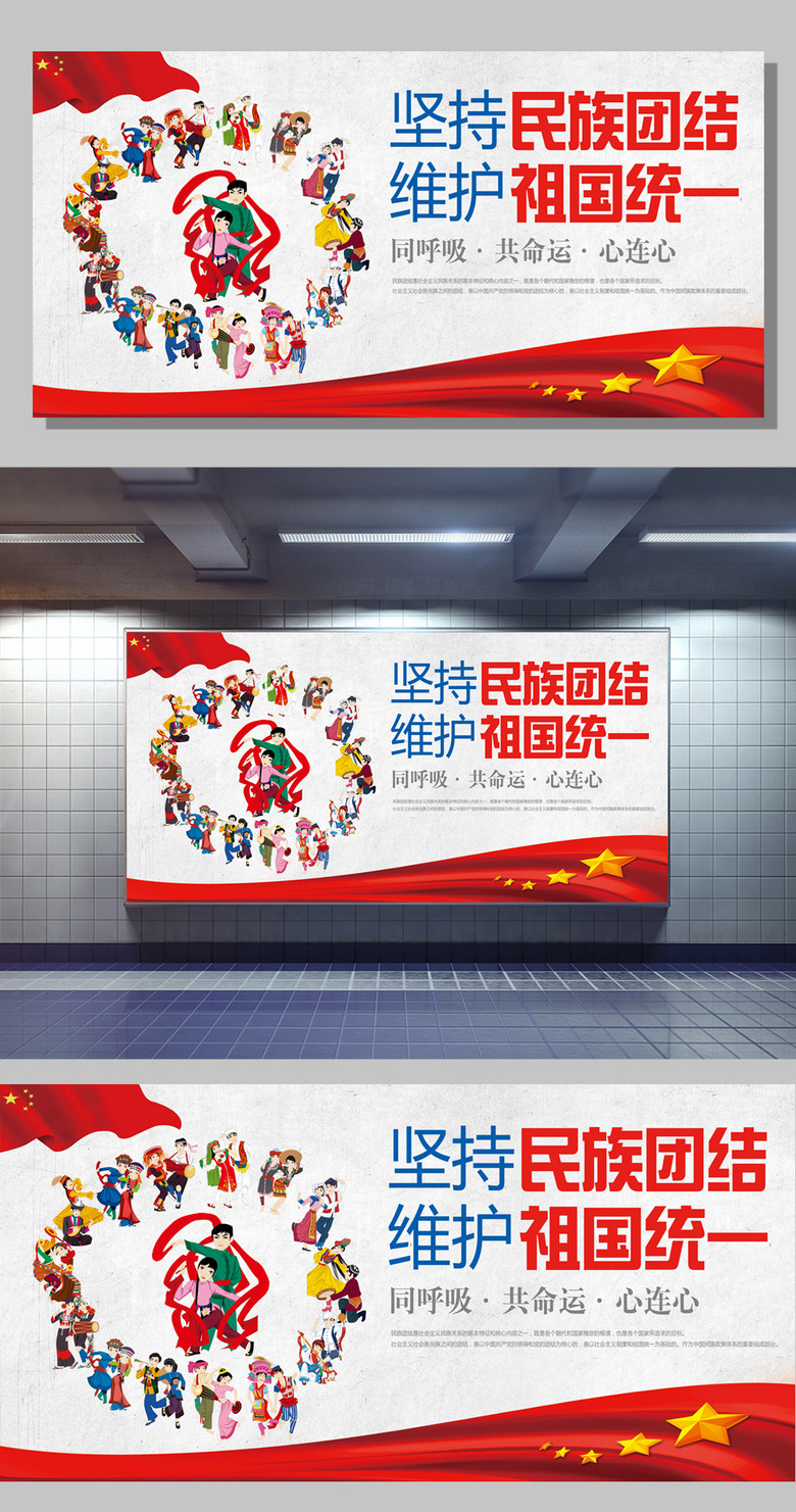 大气民族团结海报展板宣传矢量图免费下载_psd格式_120像素_编号33392415