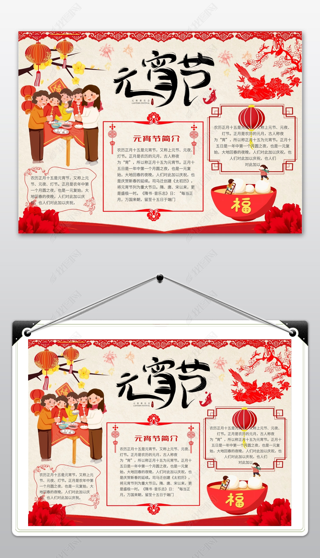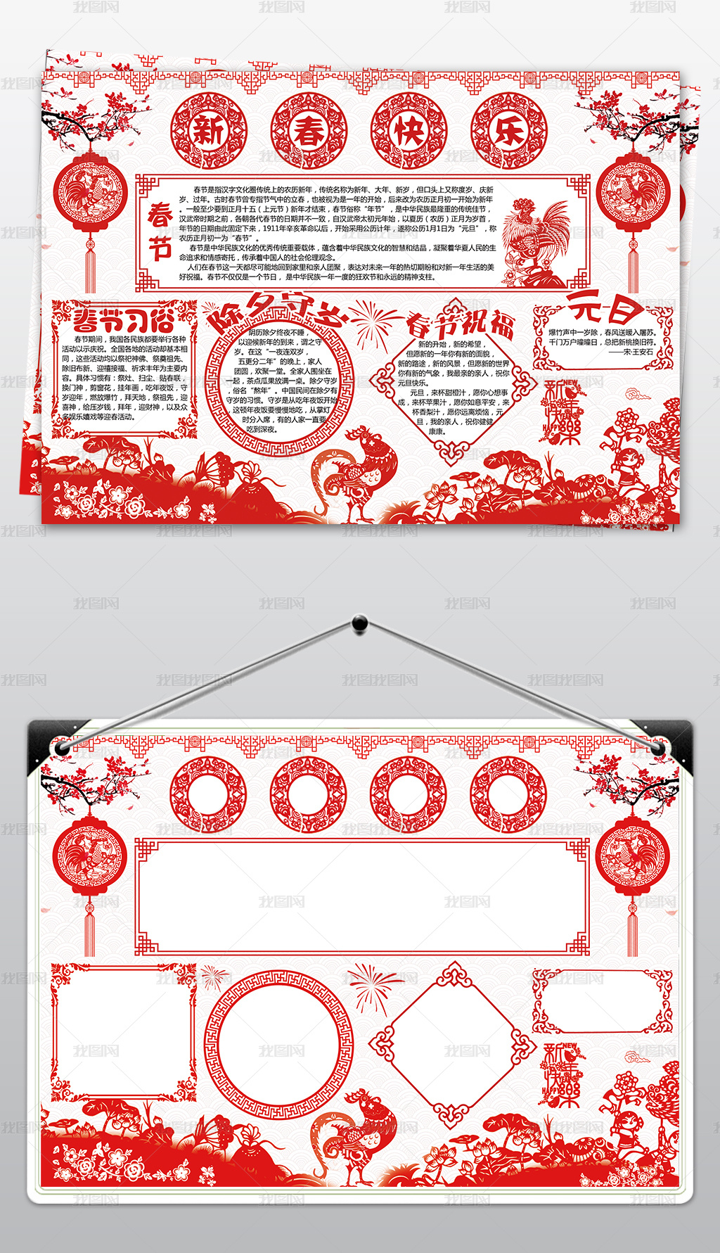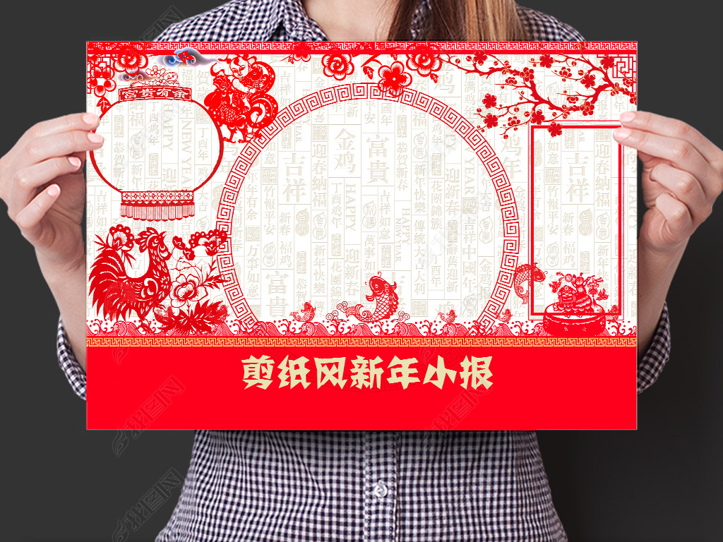 中国风通用剪纸新年小报手抄报psd模板