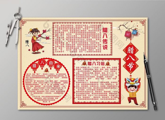 剪纸元素腊八节小报手抄报