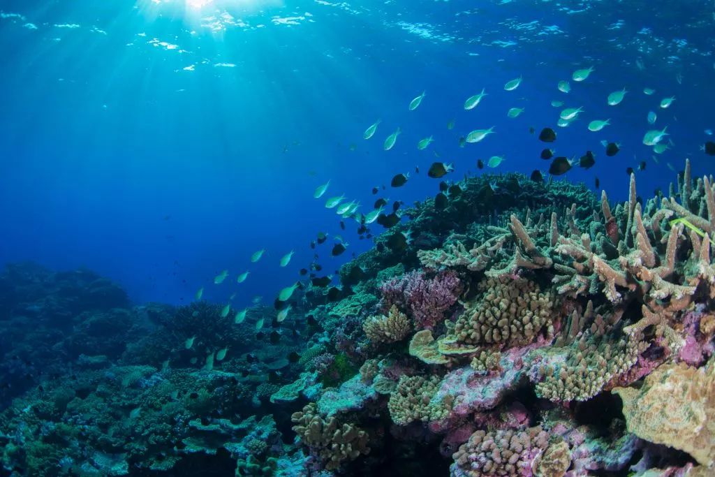 美轮美奂的海底珊瑚鱼群壁纸_一群欢快的鱼群