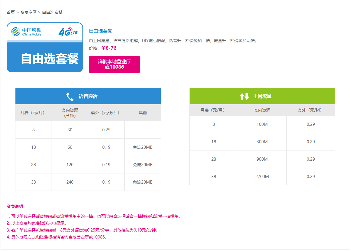 上海移动4G套餐任我嗨飞享卡乐享卡畅聊