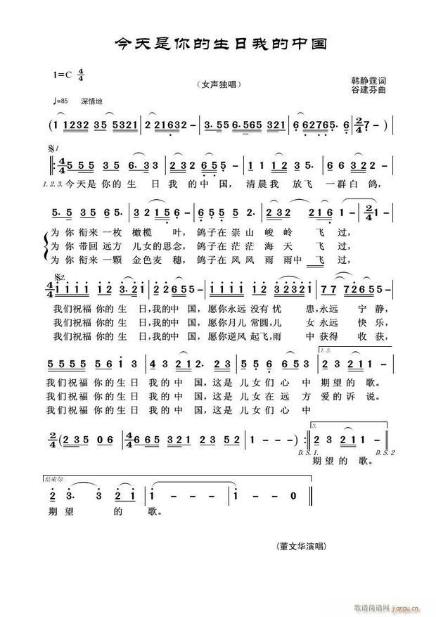 新手单音「今天是你的生日我的祖国歌唱祖国我爱你