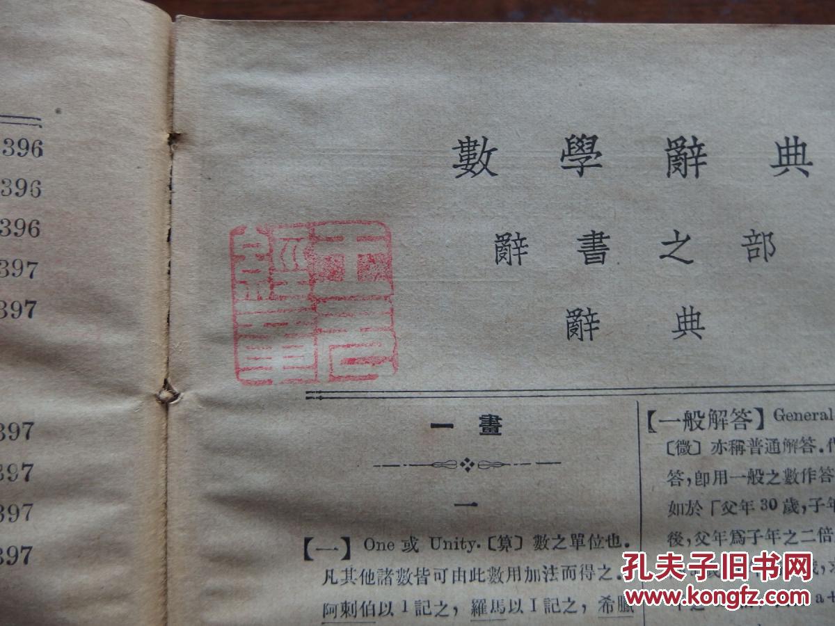 数学辞典* 王元经钤印本(民国浙江江山县