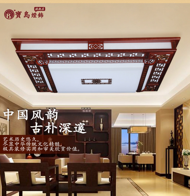 长方形亚克力客厅中国元素中式灯 仿古餐厅LED木艺卧室中式吸顶灯