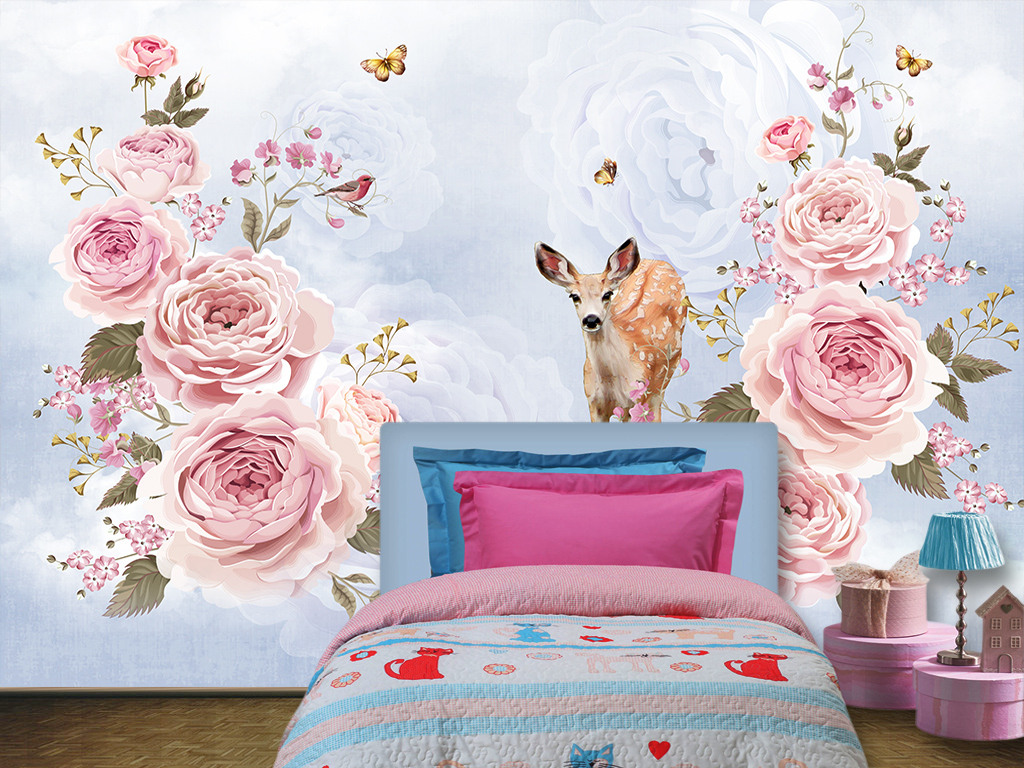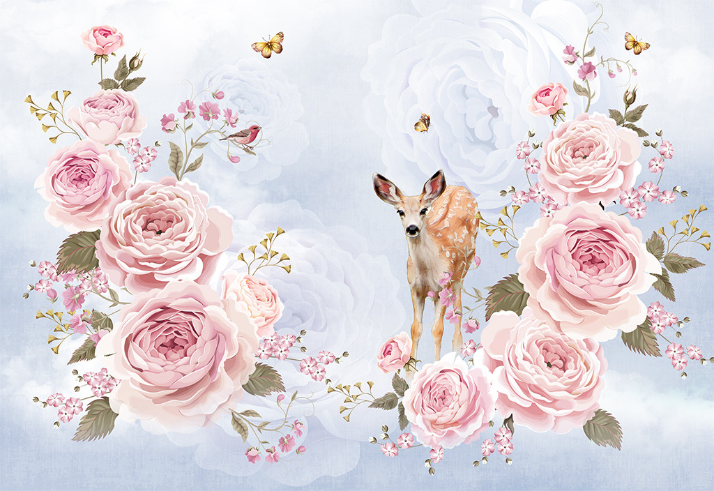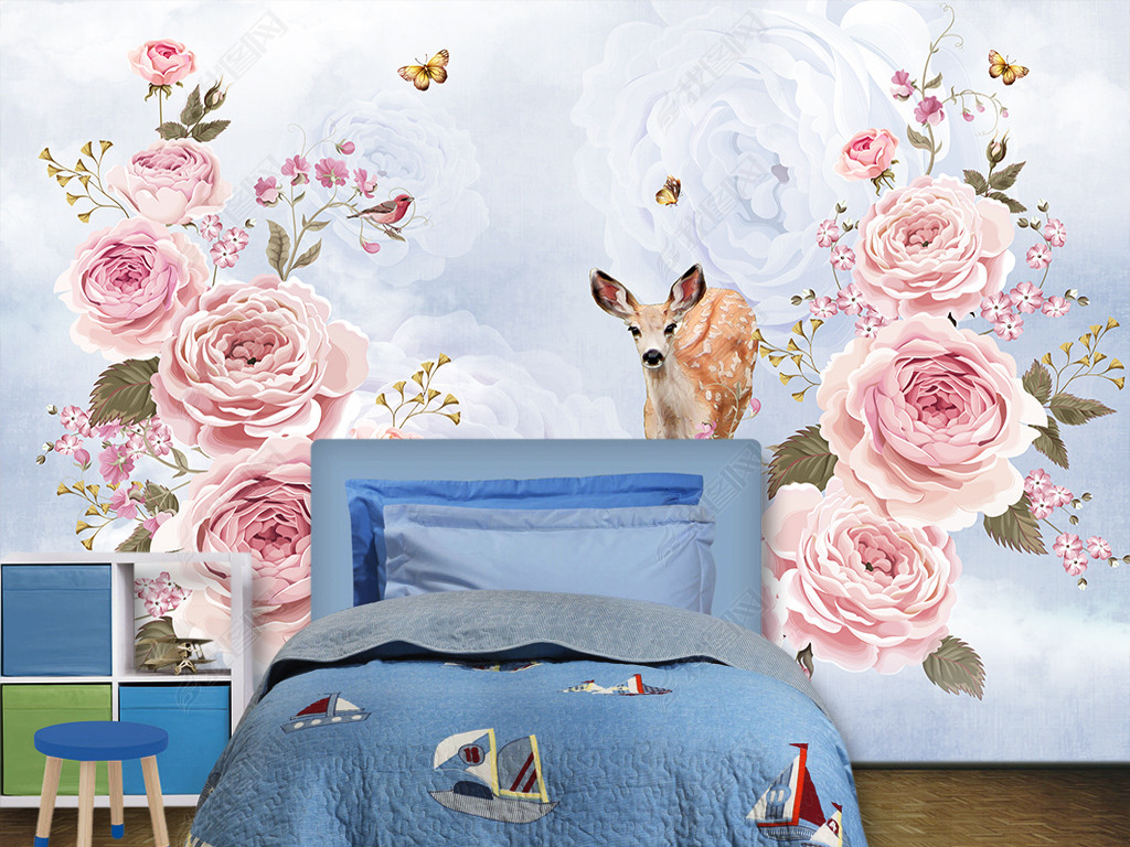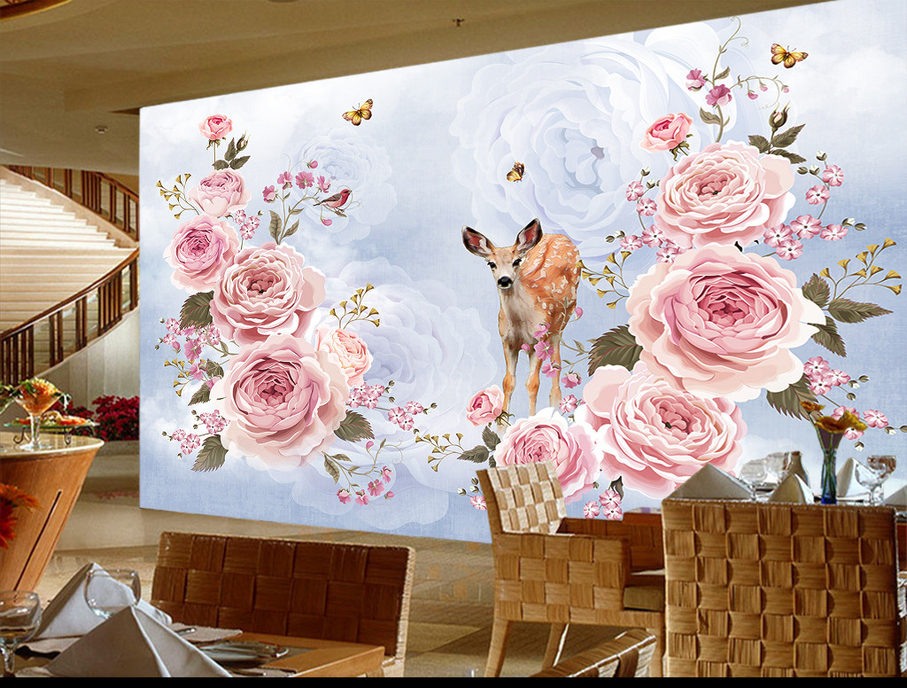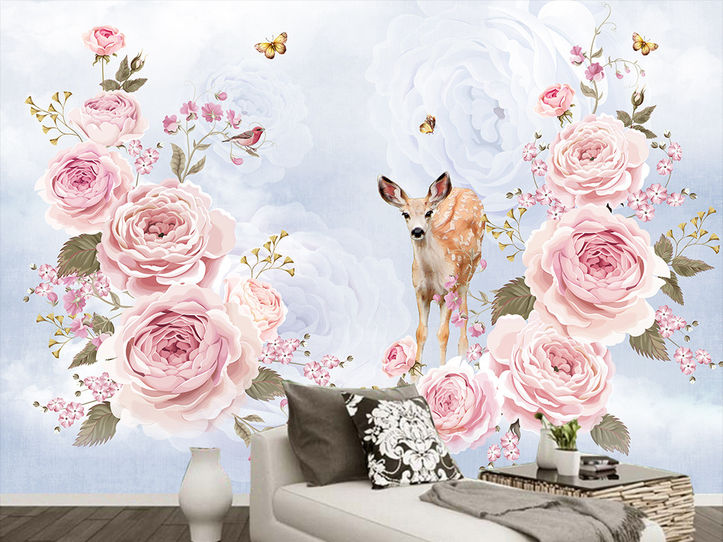 玫瑰花蝴蝶小鹿电视背景墙.图片