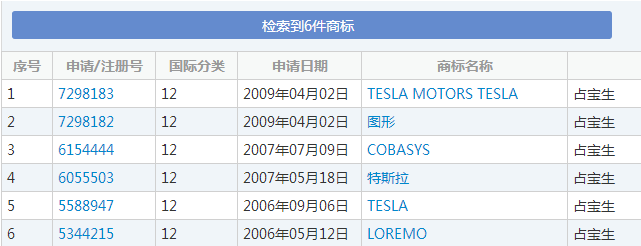 特斯拉商标PK占宝生 结果万万没想到!