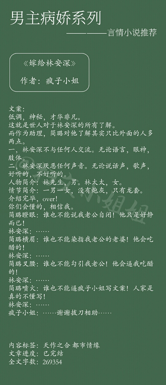 强烈推荐!那些男主傲病娇的言情小说,超爱