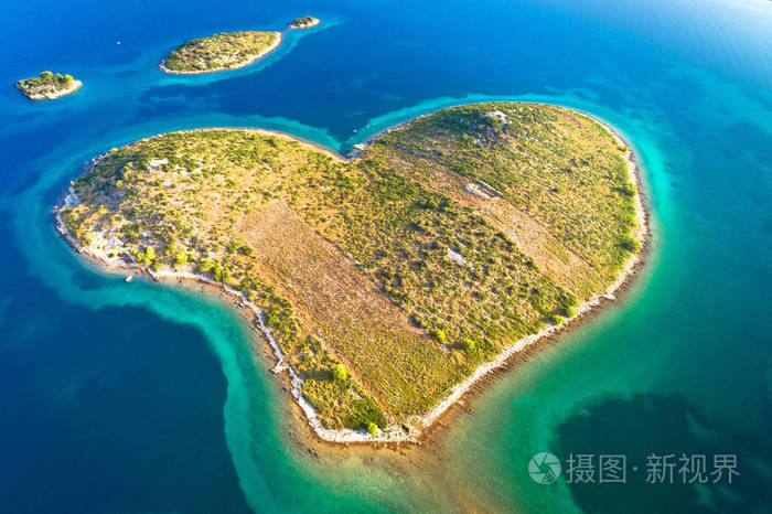鸟瞰美丽的心形岛的贾,也称为爱之岛,在