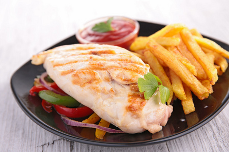 鸡胸肉和炸薯条