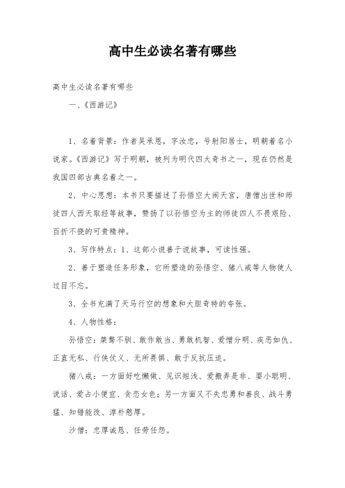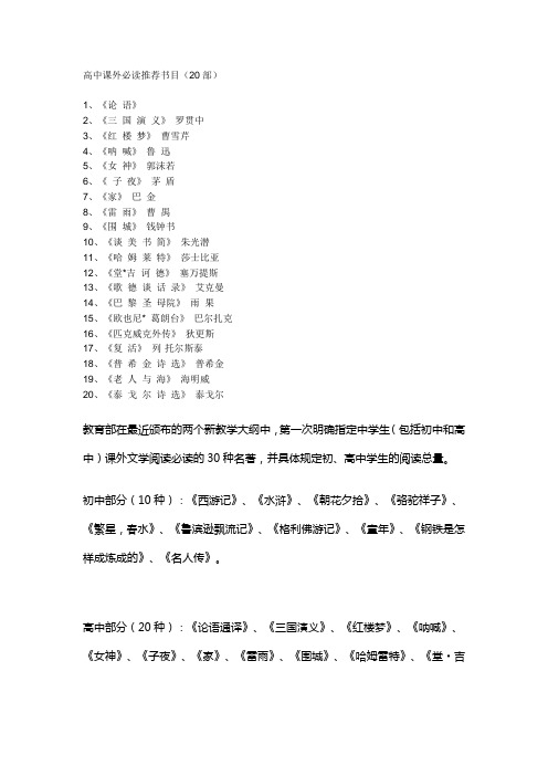 高中必读名著12本