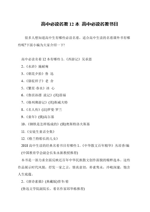 高中必读名著书目12本