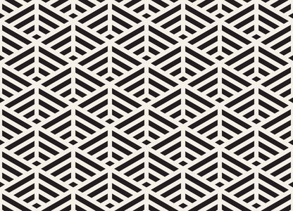 矢量黑色和白色无缝三角线等距网格的几何图