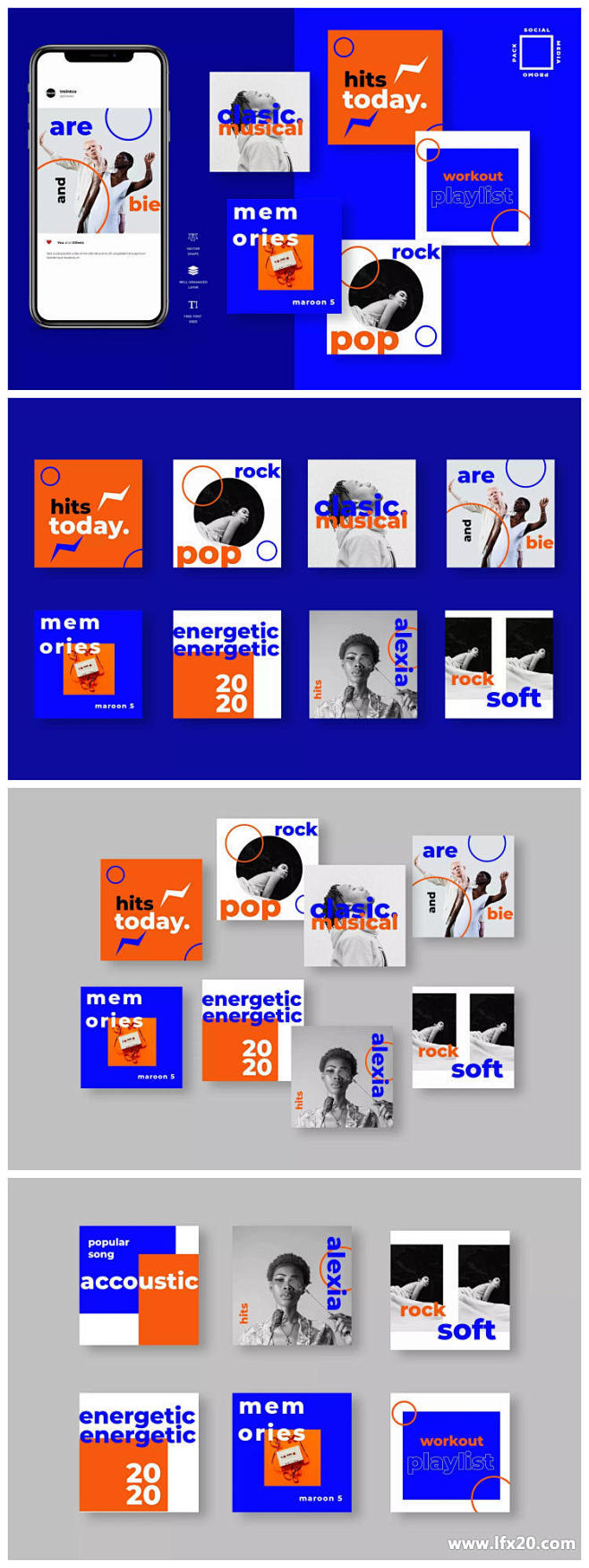 源文件 - 蓝橙双色调社交软件贴文设计模板_网络模板_素材下载