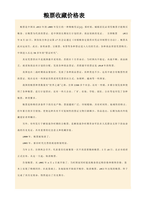 粮票收藏价格表图片