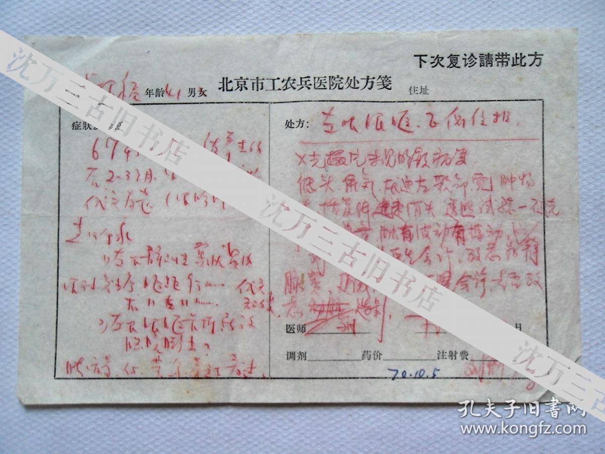 吉林市工农兵医院门诊医疗卡片(1966年)_