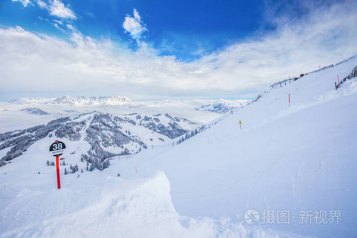 高山滑雪胜地的雪景