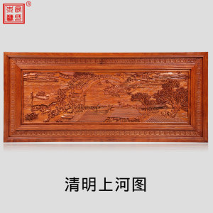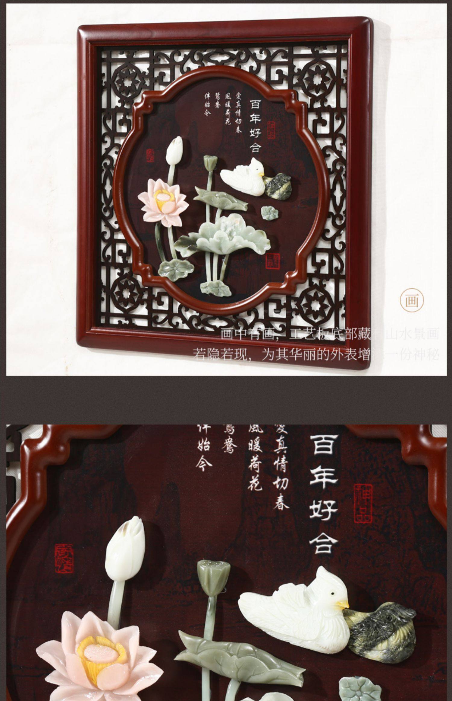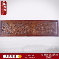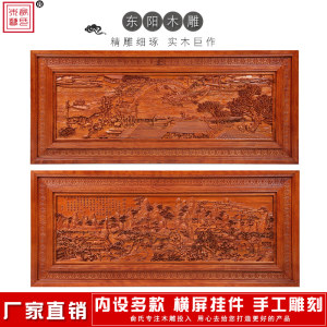 东阳木雕画中式实木玉雕挂件 中式背景墙装饰画客厅玄关浮雕壁挂