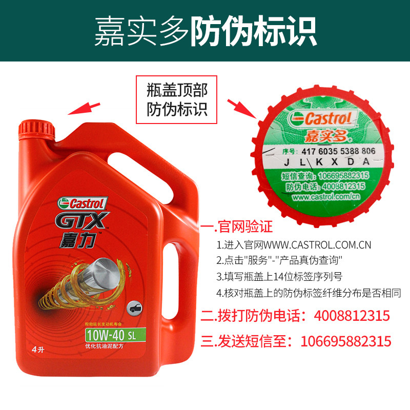 正品嘉实多机油 嘉力机油10W-40 SL 4L