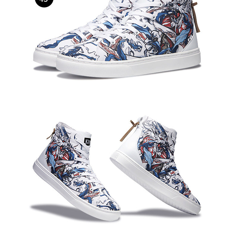 IDX\/爱定客\/虎蛟 山海经涂鸦帆布鞋男女高帮中国风嘻哈潮流情侣鞋