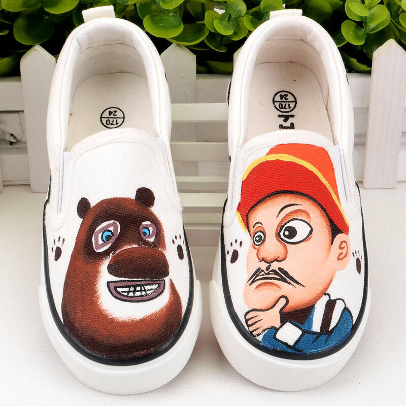 卜丁秋季新款儿童帆布鞋熊出没男童鞋 板鞋亲子鞋单鞋涂鸦手绘鞋包邮 CT19白03小熊和强哥 童35码\/22cm - 京东触屏版