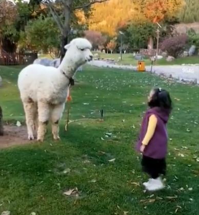 羊驼对向自己礼貌问好的小萌娃居然吐口水